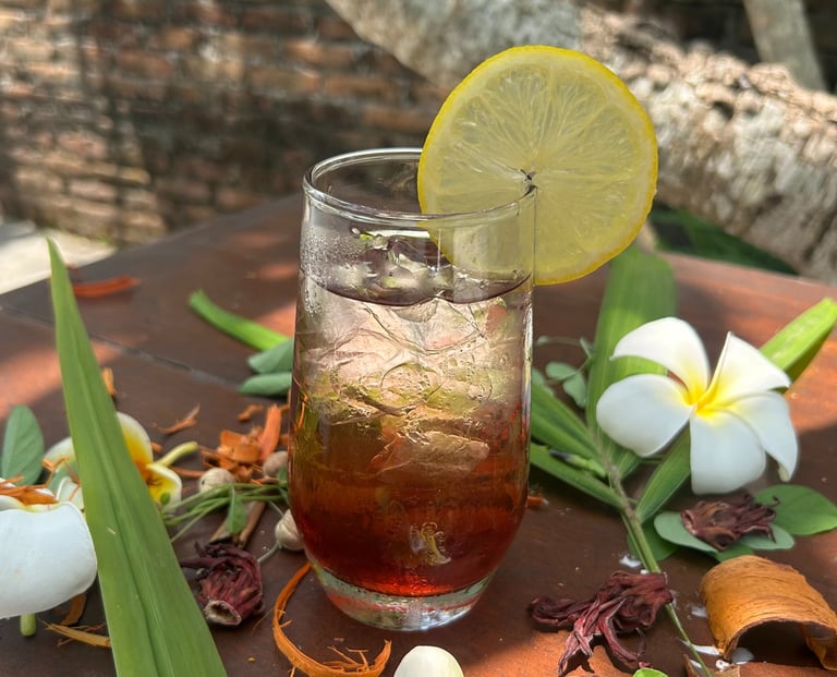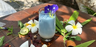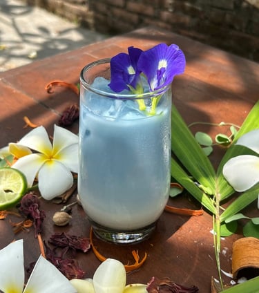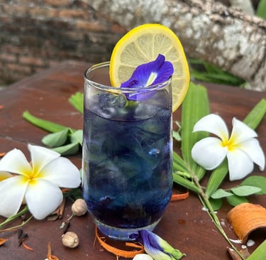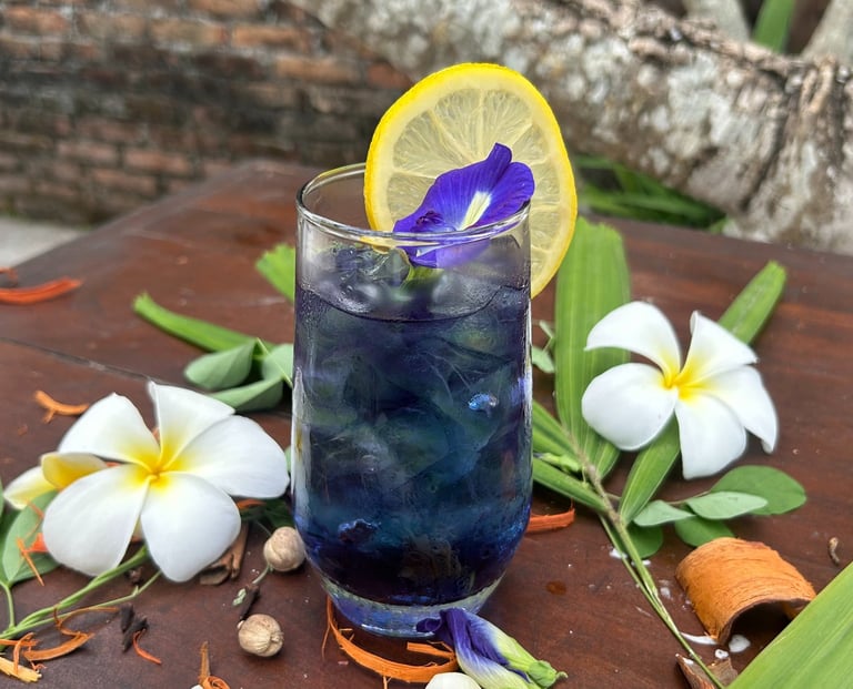 Kesegaran lemon berpadu dengan sari bunga telang biru, memberikan sensasi dingin dan menenangkan tenggorokan.