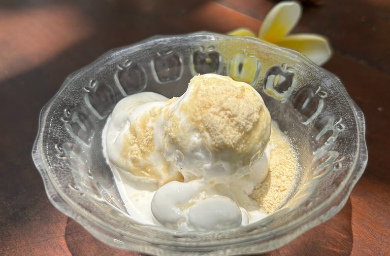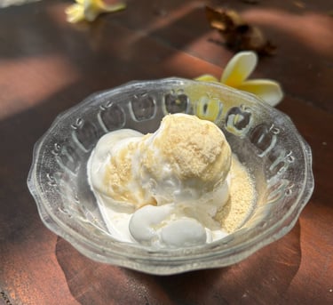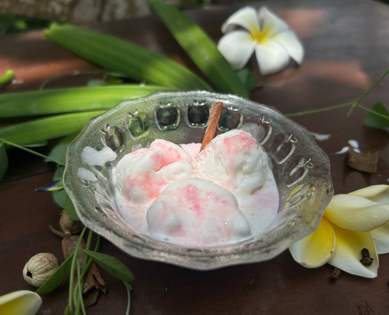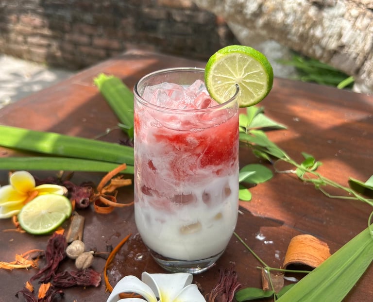 Rasa manis-asam dari bunga rosella berpadu dengan krim lembut, memberikan kesegaran alami di setiap sendok.