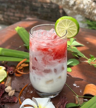 Perpaduan bunga rosella dan susu full cream yang creamy, kaya antioksidan, dan menyehatkan tubuh.
