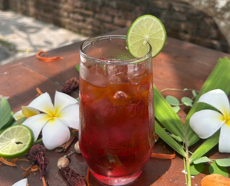 Kesegaran bunga rosella dipadukan dengan soda yang ringan, menghasilkan rasa manis-asam yang segar alami.